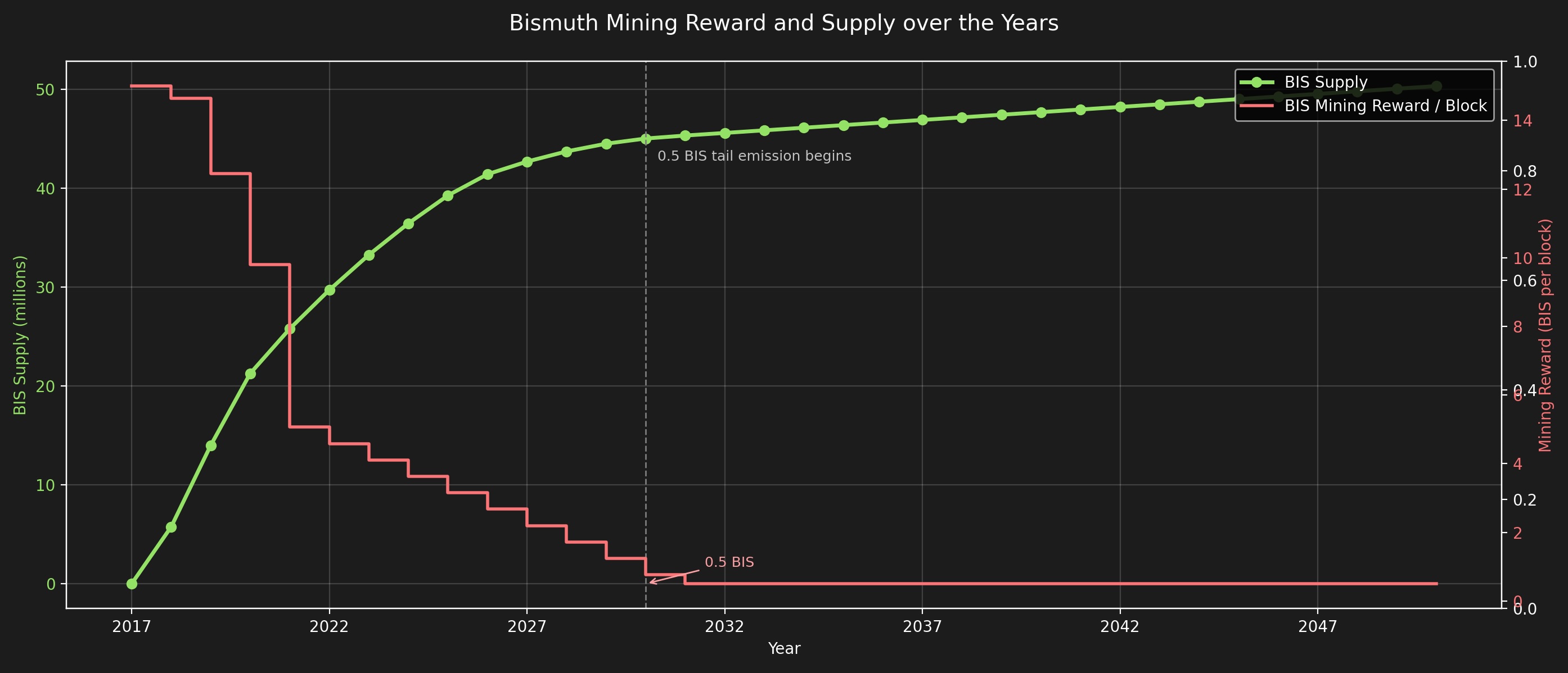 - The long-term stable tail emission (0.5 BIS/block).